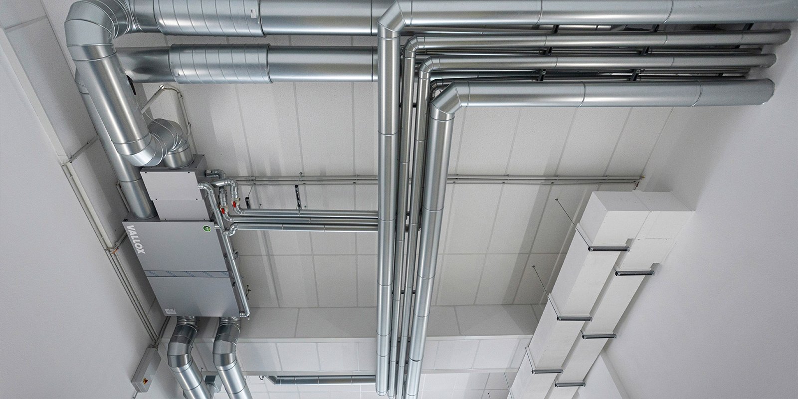 Mit den VALLOX Lüftungssystemen wird die Zuluft im Sommer sanft gekühlt und im Winter effizient vorgewärmt. Dank dieser durchdachten Kombination aus Lüftung, Heizung und Kühlung bleibt das Arbeitsklima in den Büros zu jeder Jahreszeit angenehm und konstant.