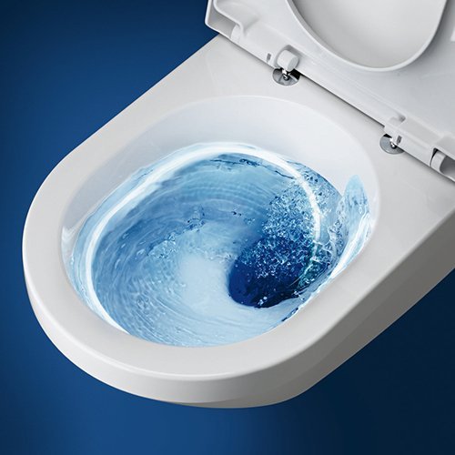 Kern des Systems ist eine durchdachte WC-Innengeometrie, die für eine besonders effiziente Wasserführung und Spülung sorgt. Die gezielte Wirbelkraft entfernt Verschmutzungen zuverlässig und reduziert den Einsatz einer Bürste deutlich. Dadurch wird auch seltener mehrmals hintereinander gespült. Neben der Wasserersparnis hat die Technik weitere Effekte: TwistFlush sorgt für eine nahezu 100%ige Oberflächenreinigung bei jeder Anwendung. Optional erhältliche Oberflächenveredelungen wie CeramicPlus, die Schmutz und Kalk abweisen, sowie die AntiBacGlasur, die Bakterienwachstum um 99,9 Prozent reduziert, erhöhen die Hygiene zusätzlich.