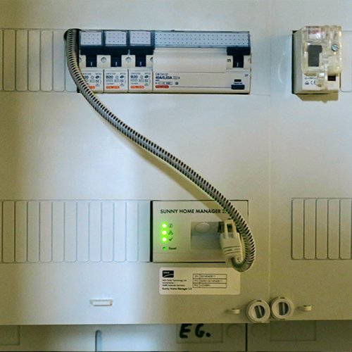Bei einer energetischen Sanierung macht schon die richtige Reihenfolge der Schritte einen bedeutenden Unterschied. Das gilt insbesondere für bislang völlig ungedämmte Gebäude, wie sie in der Vorkriegszeit üblich waren. Es wird kaum verwundern, dass die Eigentümer Investition in eine Photovoltaikanlage allen anderen Maßnahmen vorausschickte. Insgesamt 31 PV-Module mit je 320 Watt Leistung auf drei Seiten des Walmdachs sowie auf dem Flachanbau fangen das Sonnenlicht aus allen Himmelsrichtungen ein. Die Anlage hat eine Gesamtleistung von 9,92 kWp, die durch einen SMA Wechselrichter geschickt und mit einem SMA Sunny Home Manager 2.0 kontrolliert werden.