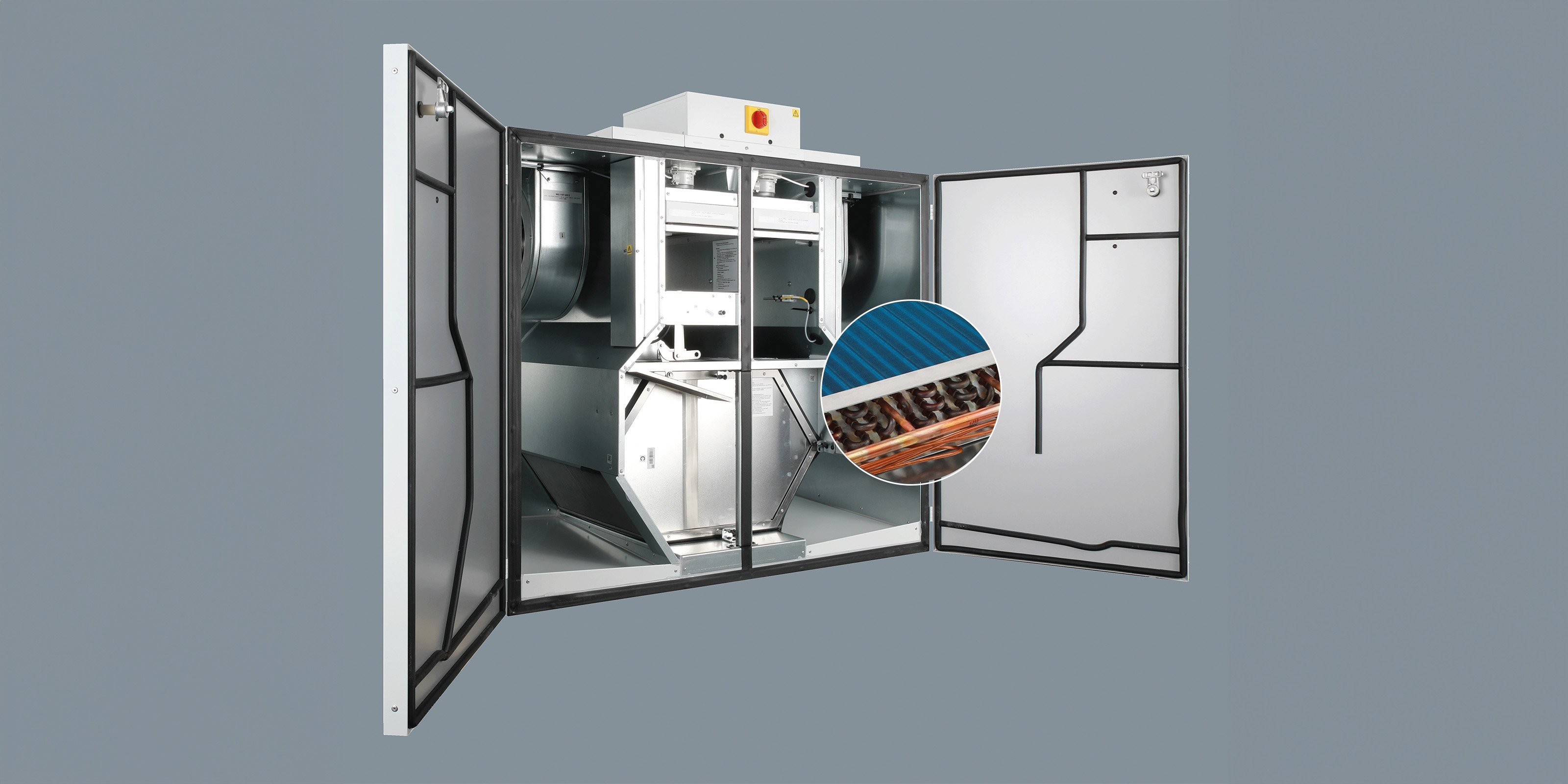Das VALLOX DX-Register wird, je nach Lüftungsgerät, intern oder extern installiert. So können bei den VARIO Geräten sowohl bei der Stand- als auch der Deckenmontage externe DX-Register eingesetzt werden. Bei den VARIO V Geräten mit vertikalen Stutzen wiederum werden die DX-Register platzsparend direkt im Lüftungsgerät untergebracht.